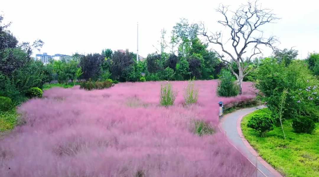 一抹嫣粉燦若霞,風(fēng)吹亂子舞青紗。 雙擁主題公園內(nèi), 粉黛亂子草也迎來(lái)“粉紅佳期”。 是草卻如花,粉粉嫩嫩,如煙似紗。