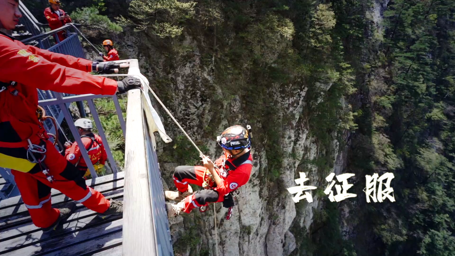 堯山風(fēng)景區(qū)內(nèi)舉行了驚險(xiǎn)刺激的絕壁崖降活動(dòng),高空速降極限運(yùn)動(dòng)吊足了年輕游客們的胃口。堯山崖降表演者站在陡峭的崖頂,順著固定好的繩索裝置躍身而下,從懸崖峭壁速降至地面,現(xiàn)場(chǎng)游客朋友們紛紛驚呼刺激精彩。