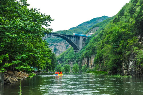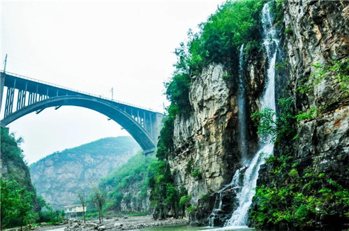 青天河單孔鐵路橋位于青天河大壩下游,高80余米,跨度130米,連接豫晉,當(dāng)時(shí)為“亞洲第一獨(dú)拱鐵路橋”。在通車的時(shí)候大橋,下陷了3厘米,負(fù)責(zé)設(shè)計(jì)的女專家站在大橋下,鎮(zhèn)定自若,誓與大橋共存亡,讓人不由得為那位女專家點(diǎn)贊,為在困難時(shí)期建設(shè)鐵路獨(dú)拱橋的工人們點(diǎn)贊。