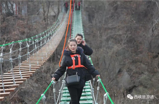 西峽第一座網(wǎng)紅探險橋!全長117米,離地將近50米,采用鋼索、特種玻璃以及木頭全新打造。