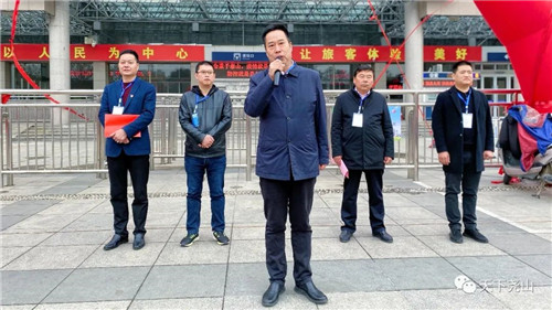 上午7時(shí)20分,薄暮冥冥,乍暖還寒。“寶豐酒號(hào)堯山旅游專列”近千名游客順利抵達(dá)平頂山站。為了迎接遠(yuǎn)方的客人,平頂山市文化廣電和旅游局、專列活動(dòng)主辦單位——平頂山金色假期旅行社、堯山景區(qū)及相關(guān)部門組織了一場(chǎng)簡(jiǎn)短而又熱烈的歡迎儀式。儀式之后,游客們迫不及待地開啟了大美堯山賞春踏青之旅,一起感受春的律動(dòng)、春的美好,一起體驗(yàn)專列出游的樂趣。