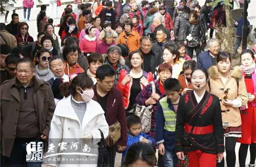 觀看完演出,游客們?cè)趯?dǎo)游的引領(lǐng)下參觀了被譽(yù)為“中國(guó)石室第一陵”的漢梁王地宮群、中原古剎——芒山寺、漢興源及陳勝園等景點(diǎn)。