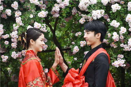 伴隨著優(yōu)美的音樂(lè),新人們漫步月季花叢,任月季花絢麗斑斕,任月季花香彌漫,四目相對(duì),十指相扣,留下相偎相依的真愛(ài)瞬間……