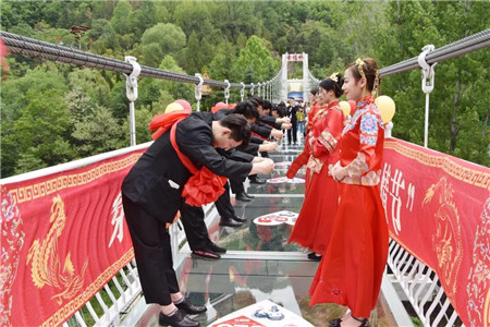 一對(duì)對(duì)新人在幸福橋上,叩拜行禮,進(jìn)行愛(ài)的宣言……