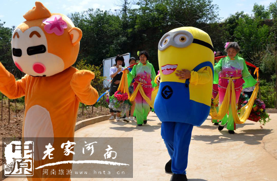 園區(qū)內人頭攢動,場面有如今天的天氣——一個字“熱”!兩個字“火熱”!小黃人等卡通人偶、小丑變魔術和秧歌隊,進行了有趣的游園活動;吸引大量的小朋友和家長跟隨拍照留念。通過互動,增強了游客的參與度,延伸了開園儀式的熱鬧。再加上美女導游的精彩講解,讓游客感受到“不一樣的黃河彩虹,不一樣的旅游!”。
