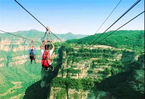 如果僅僅是在峽谷中賞景,你覺得太過平淡,你也可以選擇體驗(yàn)太行大峽谷太行天路高空滑索這一項(xiàng)目,在這樣驚險(xiǎn)的項(xiàng)目上去挑戰(zhàn)自己。