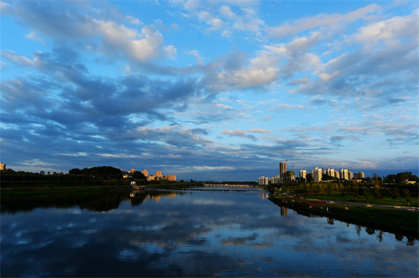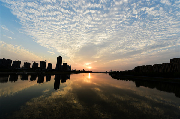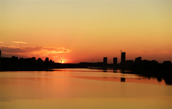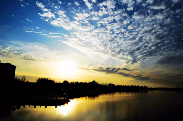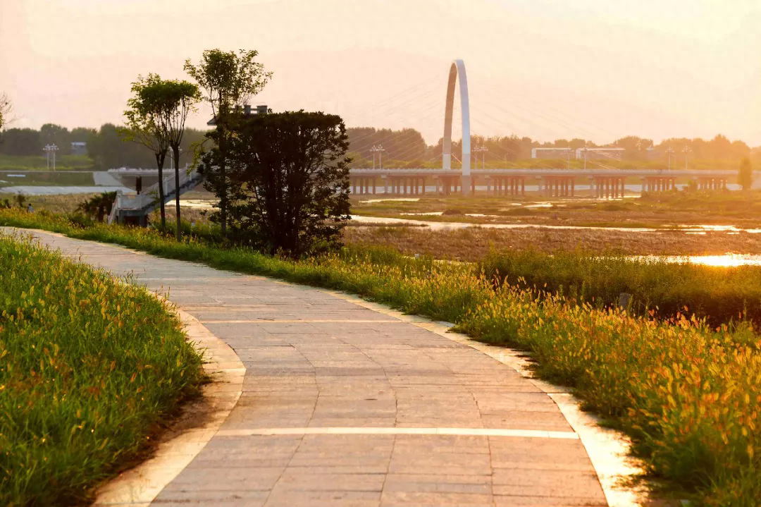 盛夏時(shí)節(jié)的駐馬店市泌陽縣濱河公園,夕陽西下,余暉灑在公園的草地上,一片金黃,河面上被晚霞照耀得美麗非凡,一派迷人的景象呈現(xiàn)在眼前。