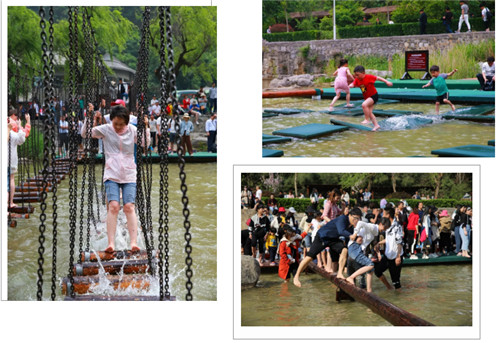 或是挑戰(zhàn)搖擺橋、浮橋、木鏈樁、獨(dú)木橋......搖擺、對(duì)陣、歡笑、落水,給你帶來歡笑和刺激。