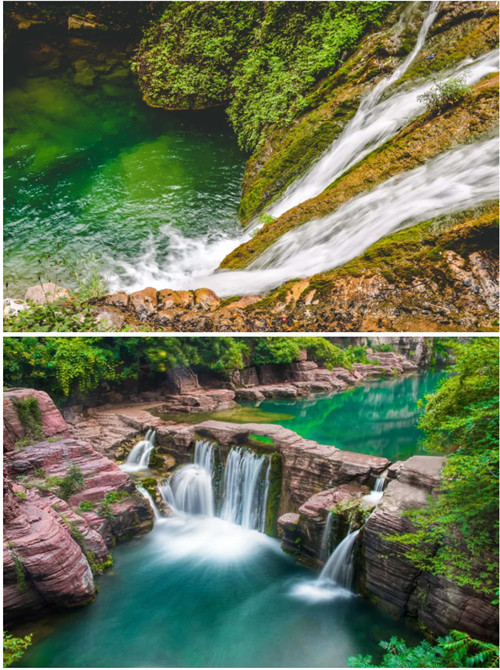 白天,行走在綠樹成蔭的峽谷間,看流水淙淙,飛瀑流泉,水光山色融為一體,感受只有20℃的夏天。