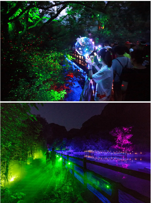 夜晚,走進(jìn)光怪陸離的幻光森林,涼風(fēng)習(xí)習(xí),水霧彌漫,光影交錯(cuò),如夢(mèng)如幻。