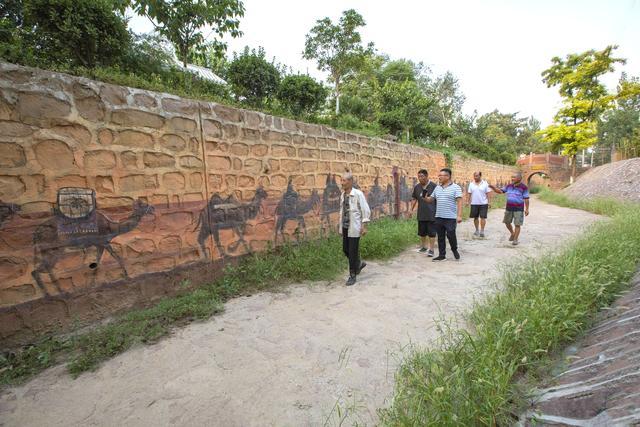 張布郎村的入口處也是萬里茶道的源頭,這里亭臺古樸,別有一番風情。在茶馬古道中的崖壁上,一只只馱運著茶葉等貨物的駱駝栩栩如生,讓人仿佛穿越了歷史。