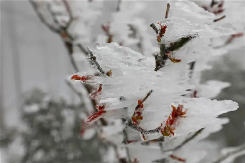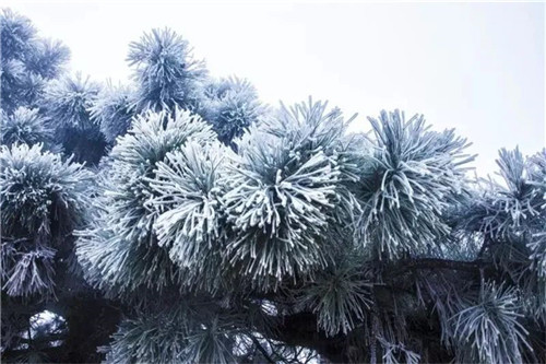 此時(shí)的雞公山是雨凇組成的冰花世界,等再冷一些,就會(huì)看到晶瑩剔透的冰裹嵌在草木之上,結(jié)成各種美麗的冰花和冰掛。滿枝滿樹的冰掛,猶如珠簾長(zhǎng)垂,山峰拂蕩,仿佛形成了一個(gè)琉璃世界。