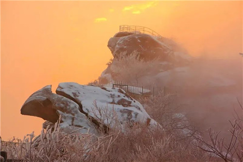 這個(gè)冬天一定要來(lái)雞公山看一看雪。披上雪衣的雞公山顏值滿分 ,整個(gè)山間銀裝素裹。晶瑩剔透的冰掛點(diǎn)綴在山間的各個(gè)角落,詩(shī)意婉約。如夢(mèng)如幻的云海奔騰而來(lái),模糊了山和天的界限……