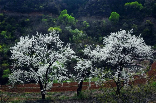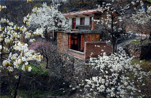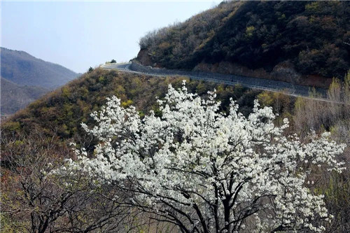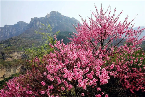 連翹黃、桃花紅、梨花白,七彩的百花裝飾著太行大峽谷。