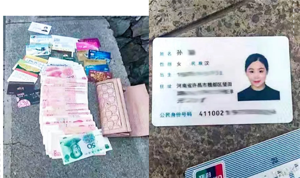 “當(dāng)時(shí)我正經(jīng)過小游園,發(fā)現(xiàn)路上有一個(gè)粉紅色的錢包,打開一看竟然發(fā)現(xiàn)四千余元現(xiàn)金、若干銀行卡和證件等物品。”