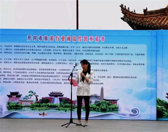 文明旅游志愿者代表宣讀《開封市文明旅游倡議書》