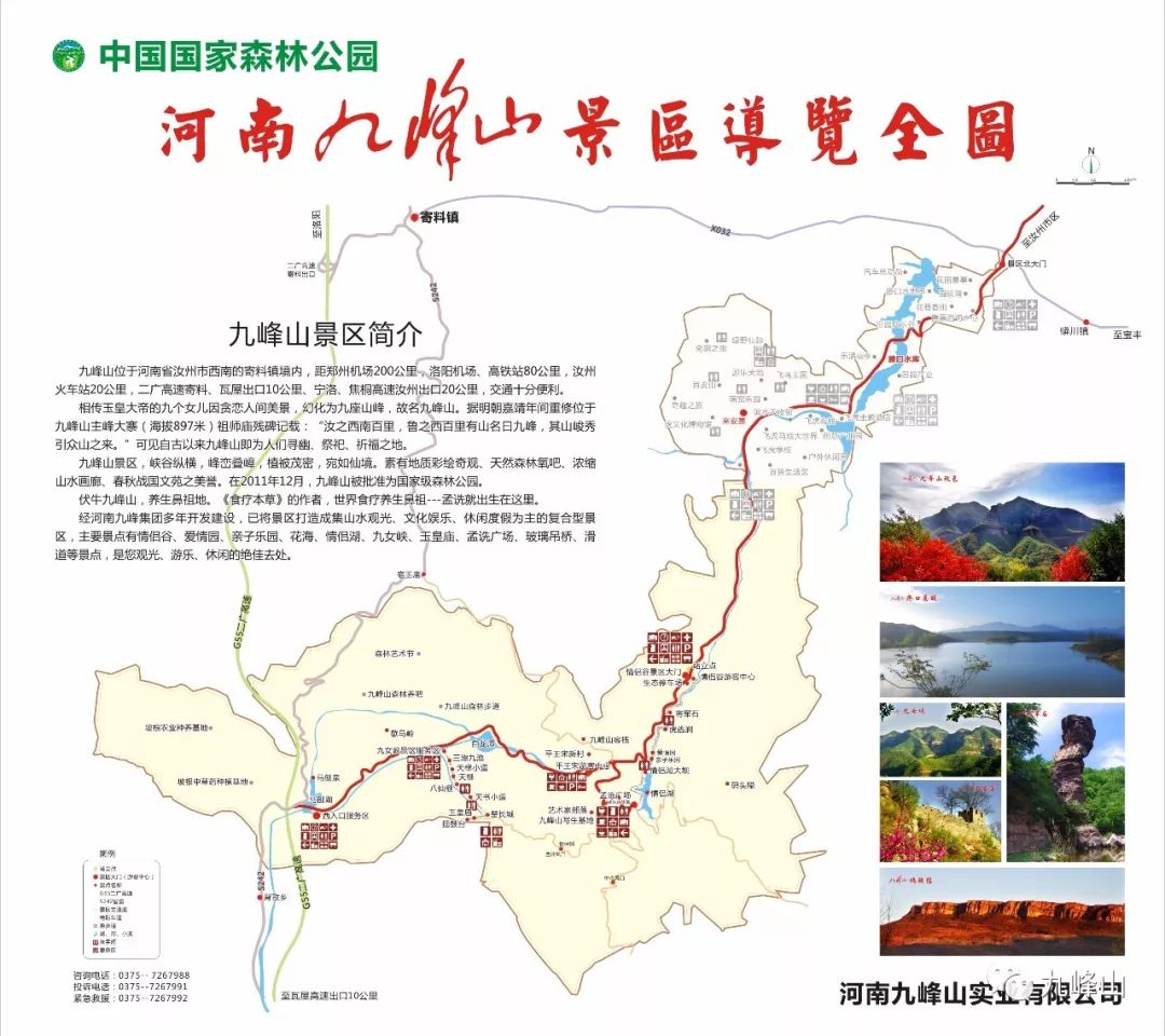 河南九峰山景區(qū)位于河南省汝州市西南10公里處的寄料鎮(zhèn)、蟒川鎮(zhèn)境內(nèi),屬伏牛山系的外方山余脈,山體地質(zhì)構(gòu)造復(fù)雜,主峰大寨海拔895米。景區(qū)內(nèi)峽谷縱橫,峰巒疊嶂,植被茂密,宛如仙境。素有地質(zhì)彩繪奇觀、天然森林氧吧、濃縮山水畫廊、春秋戰(zhàn)國(guó)文苑之美譽(yù)。
