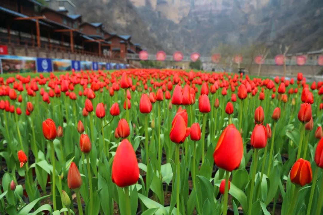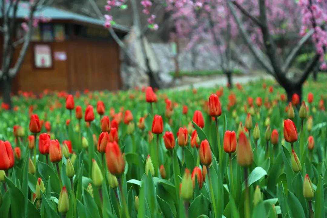 寶泉的春天是屬于郁金香,捂了一整個寒冬,數(shù)萬朵郁金香,在春風的吹拂下一同含苞待放,一種獨屬于花海的浪漫,從此刻開始蔓延