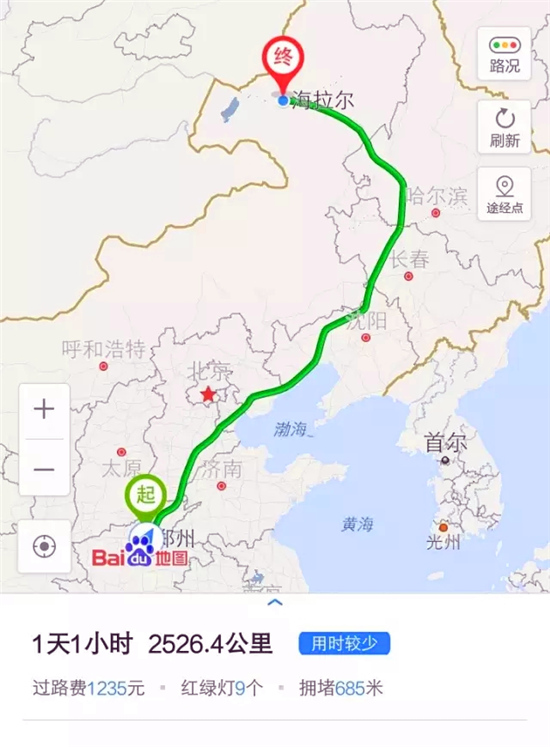 鄭州到海拉爾單程用時(shí):