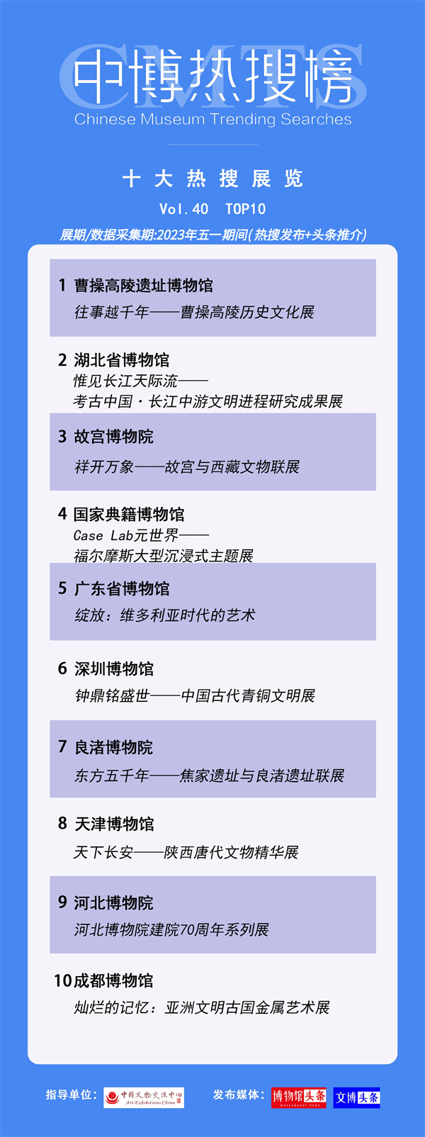 中博熱搜榜今日發(fā)布最新一期(第40期)“博物館十大熱搜展覽推介”,安陽曹操博物館《往事越千年——曹操高陵歷史文化展》沖上全國博物館十大熱搜展覽TOP1。