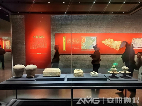曹操博物館基本陳列為《往事越千年——曹操高陵歷史文化展》,展出文物488件(套),設(shè)置大型場景2處、多媒體11處,講述曹操高陵的發(fā)現(xiàn)和發(fā)掘過程,展示重要文物和曹操的豐功偉績。曹操博物館充分利用曹操高陵遺址原有地形,立體呈現(xiàn)曹操墓本體、神道、陵前建筑基址、圍壕、垣墻、陪葬墓等遺跡將遺址展示與文物展示充分融合在一起。
