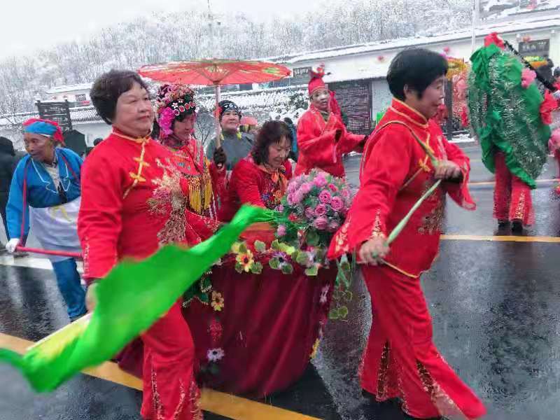 除了免費(fèi)的元宵外,景區(qū)還為游客準(zhǔn)備了豐富多彩的節(jié)目匯演,精彩的演出游客們給與高度贊賞,讓游客在堯山感受不一樣的中國(guó)年。精彩絕倫的大銅器表演,喜氣洋洋的旱船表演,整齊劃一的腰鼓表演,更有仙氣十足的“蚌鶴舞”表演 ,每一場(chǎng)演出都引得游客叫好聲不斷,不少游客表達(dá)元宵節(jié)不僅可以欣賞到雪后堯山美景,更能看到不少中國(guó)傳統(tǒng)民俗節(jié)目匯演,真心為景區(qū)點(diǎn)贊。