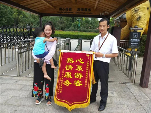 7月15日上午,游客到景區(qū)認領(lǐng)手機,為表達失而復(fù)得的感激之情,給景區(qū)送上一面錦旗。