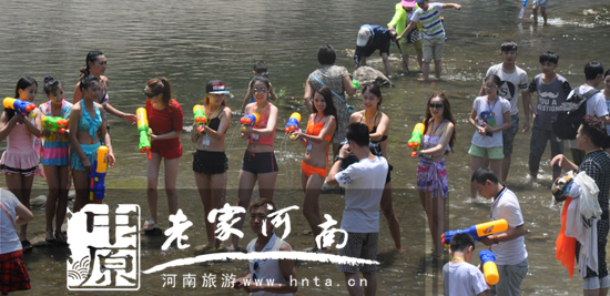 青天河首屆比基尼親水節(jié)將湖泊景觀、活泉漂流、溪潭瀑布、水上樂園等旅游資源進行完美融合,以“玩水”為主題,突出“水上旅游”特色,真正讓游客感受到“親水”的樂趣。本屆比基尼潑水狂歡節(jié)的舉辦,徹底點燃了景區(qū)暑期旅游市場。七彩瀑、水簾洞、佛耳峽……佳麗們的倩影,性感妖嬈的狂舞桑巴,震撼心靈的鼓樂,千人水戰(zhàn)在藍天碧水間上演。
