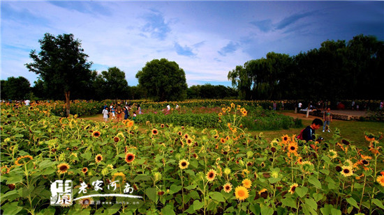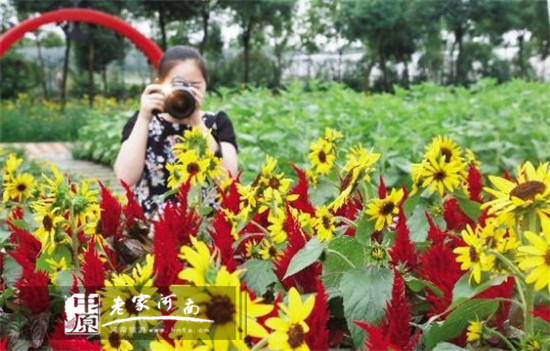 花海展示區(qū)包含向日葵花田和七彩花田兩大塊,其中,向日葵花田占地逾60畝,特別引進(jìn)了30萬株進(jìn)口觀賞性向日葵,是中原地區(qū)面積最大的葵花園區(qū);由鼠尾草、雞冠花、孔雀草、長春花、矮牽牛等7種植物打造的七彩花田,寬15米,長120米,也是目前中原地區(qū)栽種面積最大的花海色帶。