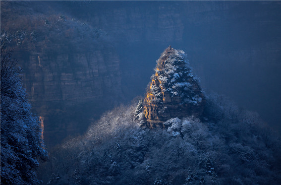 一場雪,讓太行大峽谷變成了銀裝素裹的童話世界,瓊枝玉葉,粉裝玉砌,連綿的雪山仿若置身仙境。
