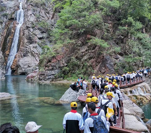 初夏時(shí)分,沐浴著清爽的夏風(fēng),千余名師生行走在寶泉大峽谷內(nèi),近距離感知自然世界。寶泉景區(qū)自然生態(tài)系統(tǒng)完善,森林資源豐富,生長(zhǎng)著無(wú)患子、紅豆杉、青檀等數(shù)十種珍稀植被資源。廣大師生在寶泉自然大課堂中,走出書(shū)本,實(shí)踐教學(xué)。