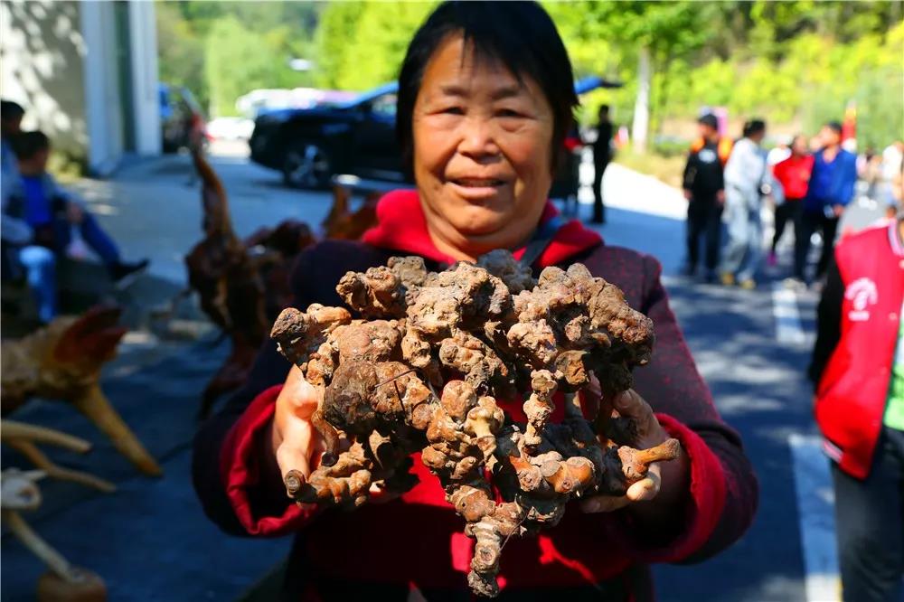 老君山當(dāng)?shù)乩限r(nóng)手捧“土山貨”,笑容滿面