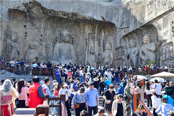 如果說游客在隋唐洛陽城景區(qū)感受到的是一支華麗的盛唐舞曲,那么,龍門石窟奏響的就是一首莊重的歷史之歌。