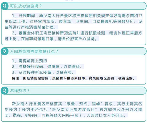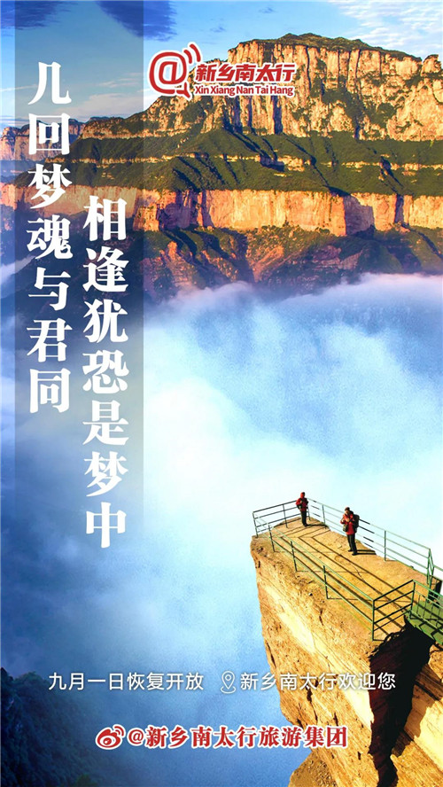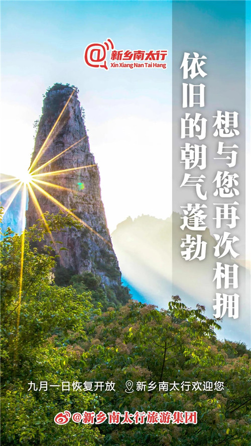 夏已盡,秋已至,我們重啟美好!前期因為洪水和疫情而一度“停擺”的新鄉(xiāng)南太行,已經(jīng)“蘇醒”過來,正逐漸恢復(fù)“生機(jī)”。經(jīng)過上級主管部門審核驗收,在嚴(yán)格落實疫情防控的基礎(chǔ)上,新鄉(xiāng)南太行旅游度假區(qū)于2021年9月1日起正式恢復(fù)對外開放(天界山景區(qū)暫未開放)。