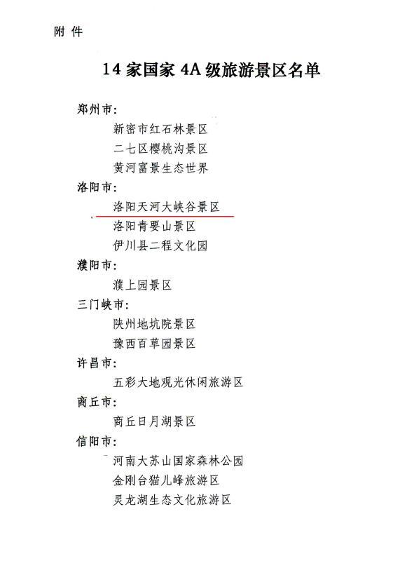 近日,河南省旅游景區(qū)質(zhì)量等級評定委員會發(fā)布公告,欒川縣天河大峽谷景區(qū)正式被批準為國家4A級景區(qū)。至此,欒川將擁有老君山、雞冠洞兩個5A級景區(qū),重渡溝、龍峪灣、養(yǎng)子溝、抱犢寨、伏牛山滑雪樂園、天河大峽谷六個4A級景區(qū),欒川旅游進入“34A”時代。欒川縣4A級以上景區(qū)數(shù)量,在全國名列前茅。