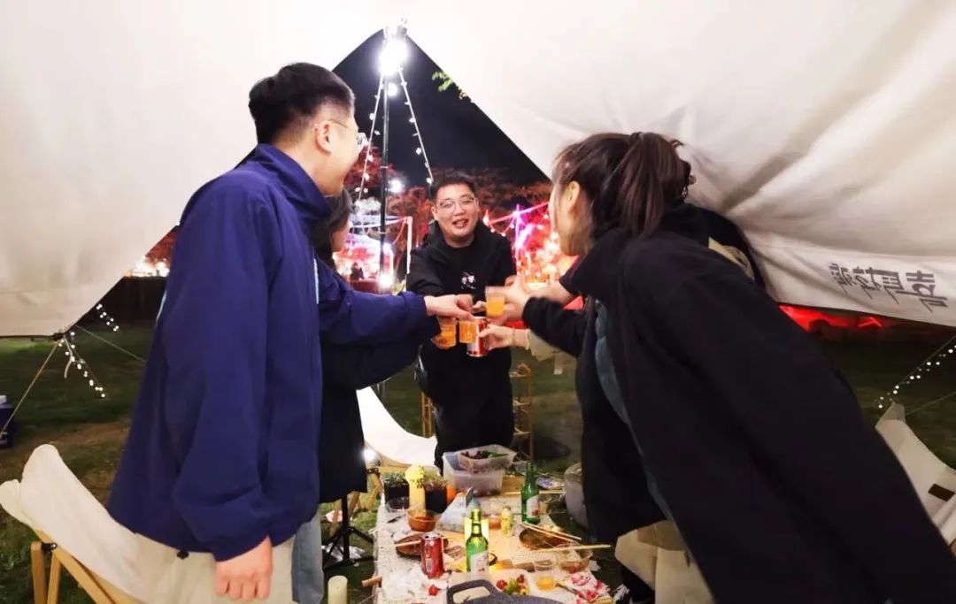 和家人朋友相聚在八里溝輕奢露營