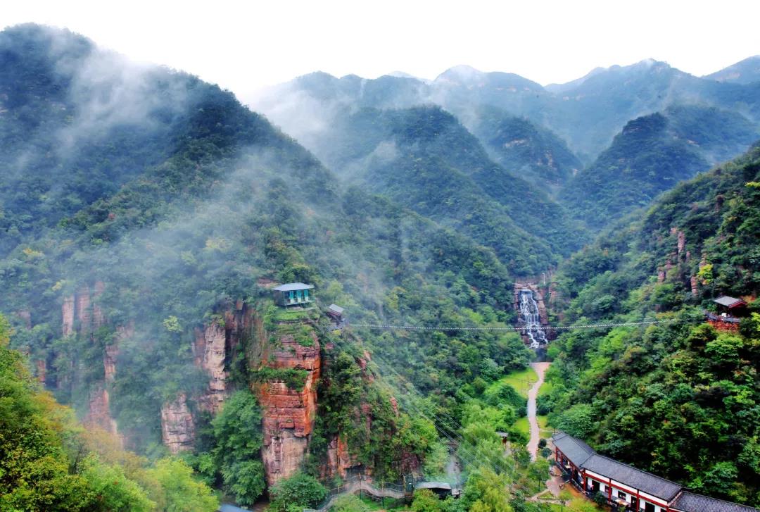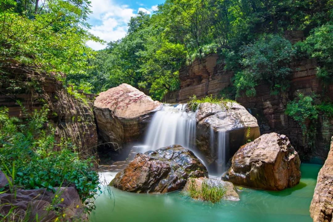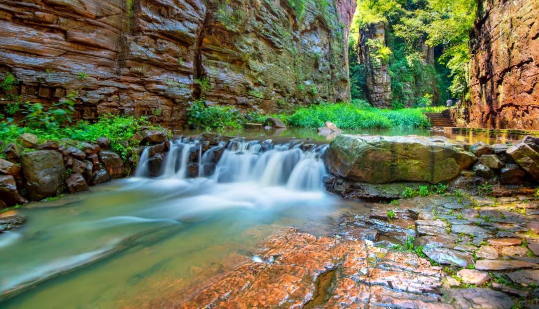 峽谷內(nèi)有紅巖絕壁、飛瀑流泉、溪魚風鳥