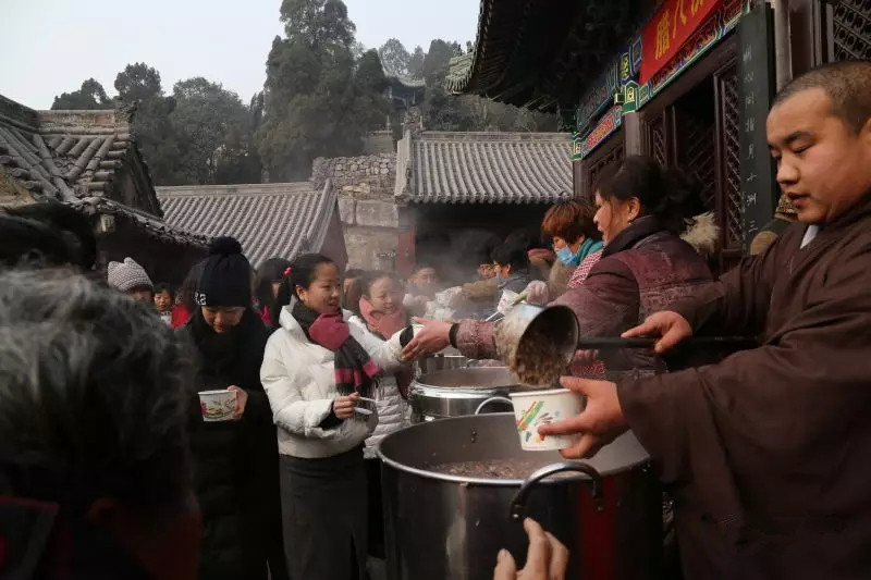 每逢臘月初八,月山寺都會舉行隆重的臘八施粥祈福活動,紀念釋迦牟尼佛成道,謹記佛陀的慈悲的精神,弘揚布施、給與、助人的慈善精神。