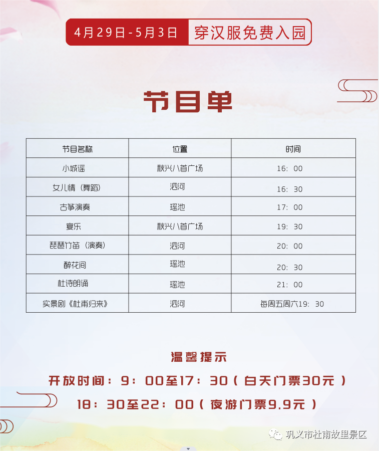 鞏義杜甫故里:五一假日,穿漢服免費(fèi)游!