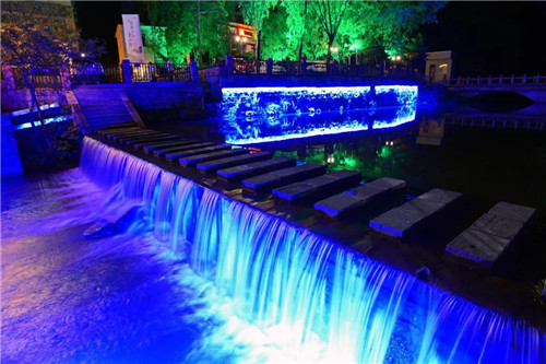 幽谷飛泉掛林梢。峰回處,人語遙。九龍瀑下,麗日彩虹繞。秀甲天下有公論,歷滄桑,樹標(biāo)高。