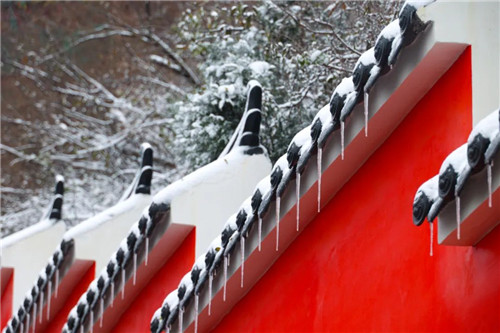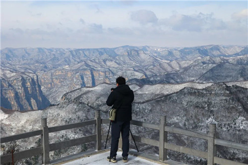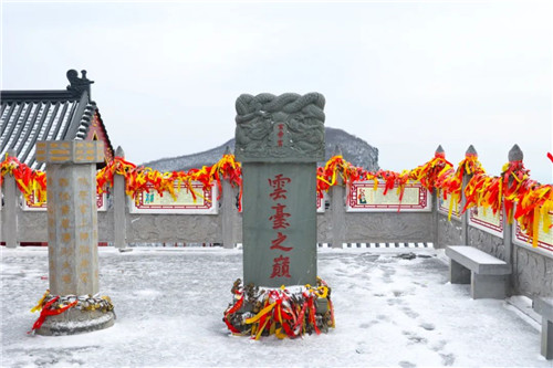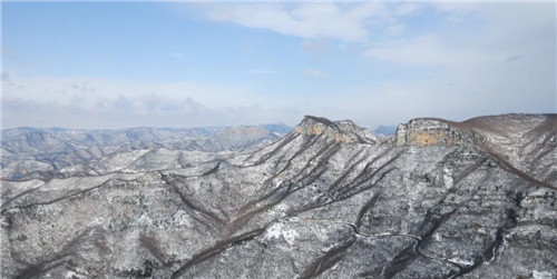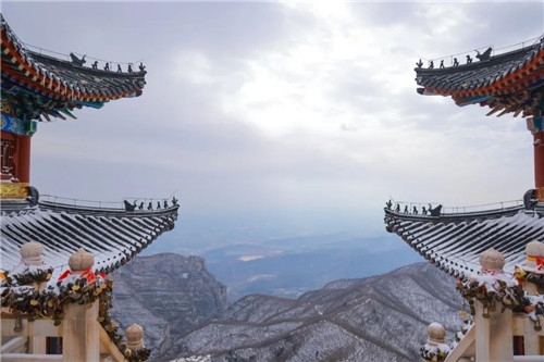 亂瓊碎玉,冬之贊歌,群山披上冬衣,林木若隱若現(xiàn),亭臺樓閣在雪中別有一番意境,登臨高處,便可盡覽云臺山詩意山水畫卷。
