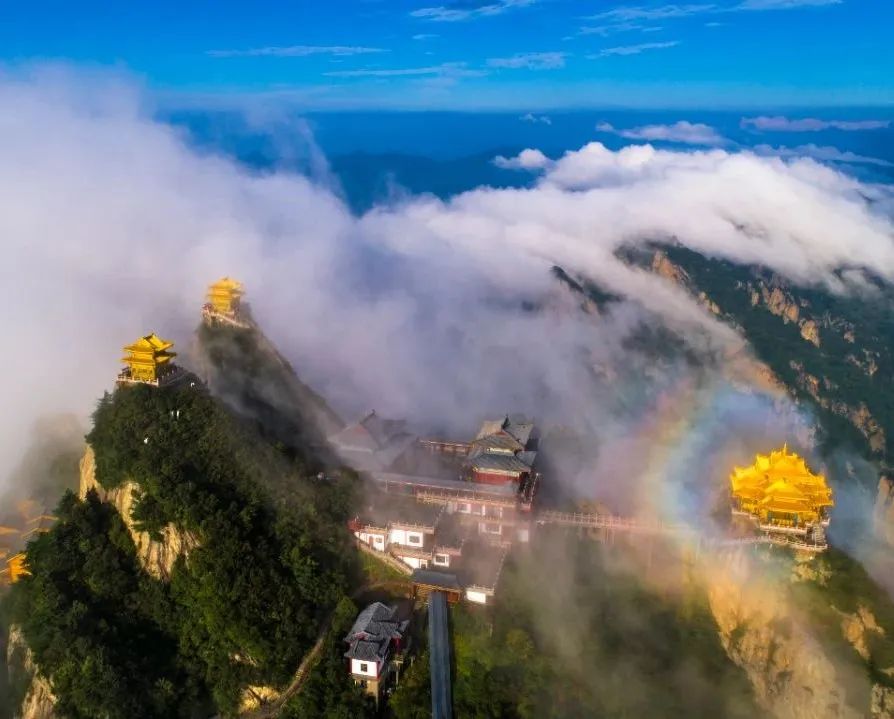 據(jù)悉,該套郵票一套九枚,最后一枚郵票圖案以老君山為設(shè)計(jì)素材,圖案名稱擬定為《金頂增輝》。