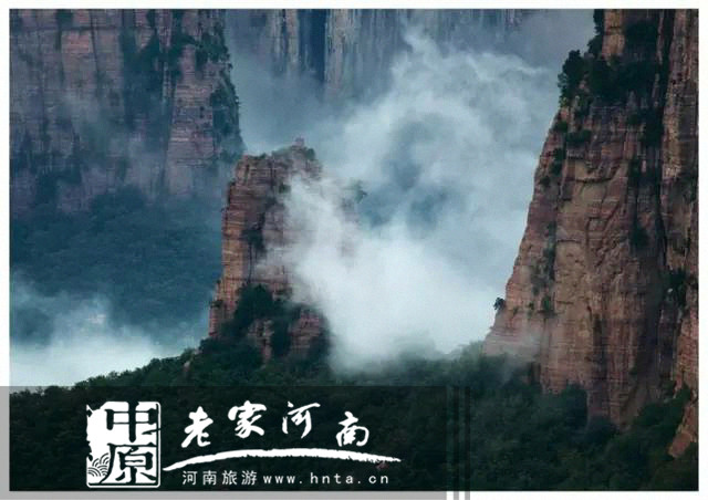 回龍?zhí)旖缟降脑品瀹嬂任挥诶蠣旐斨碌陌肷窖?個各具特色的觀景臺構(gòu)成其360°欣賞太行風光的獨一無二的優(yōu)勢。移步換景,眼前如畫卷般次第展現(xiàn)佛臥太行、紅巖峽谷、太行山嶂、鳳凰展翅、雙龍戲壁、龜伏太行、圣象馱祖等景點,氣象萬千。而翻騰的云霧更是讓這景色時隱時現(xiàn),頗似幻境。