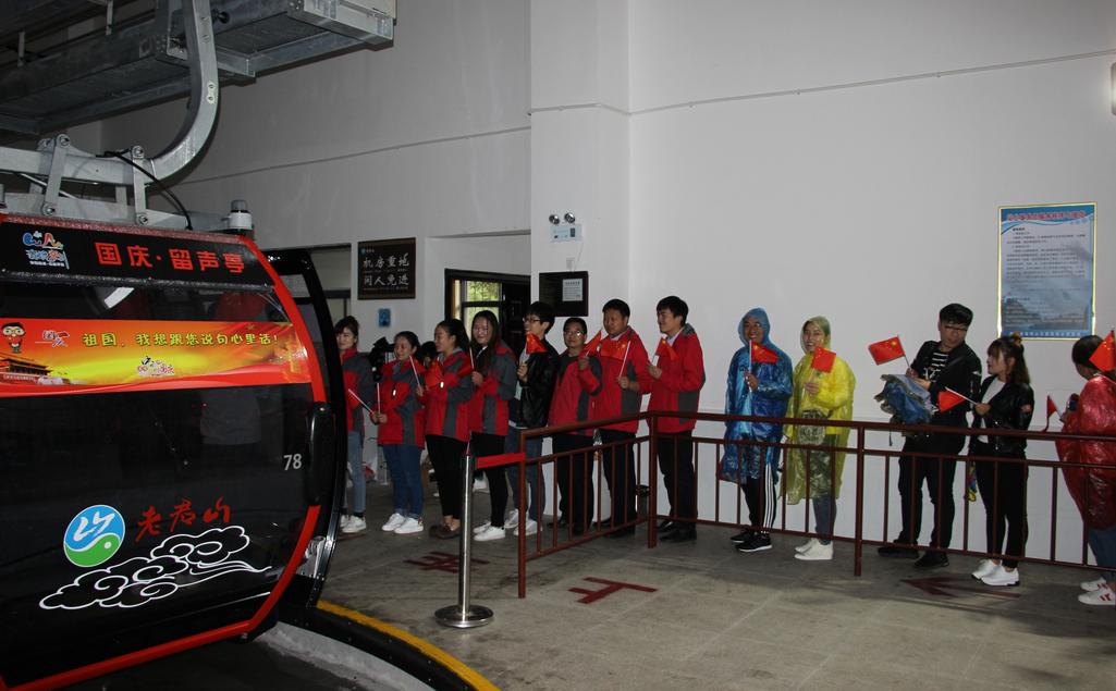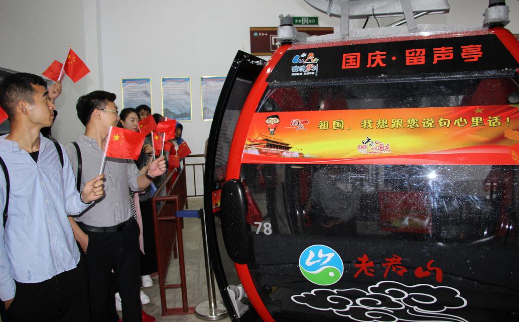 10月1日,在河南欒川老君山景區(qū)云景索道上,一個(gè)經(jīng)過(guò)精心打造充滿國(guó)慶元素的纜車格外搶眼,每次纜車進(jìn)站游客都好奇的詢問(wèn)工作人員“這個(gè)纜車是做什么的?”,經(jīng)工作人員解答,記者得知這個(gè)纜車是為今年十一國(guó)慶節(jié)特別包裝打造的“我跟祖國(guó)說(shuō)句心里話”國(guó)慶留聲亭。游客可以在乘坐纜車欣賞美景的同時(shí)對(duì)著鏡頭向祖國(guó)說(shuō)句心里話,以表達(dá)對(duì)祖國(guó)68歲生日的祝福。