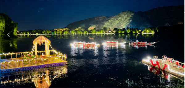 除此以外,觀光小火車(chē)、無(wú)動(dòng)力游樂(lè)園、櫻花許愿樹(shù)、跑馬場(chǎng)……各種游玩設(shè)施應(yīng)有盡有,再配上藍(lán)天白云、九曲黃河的壯美景色,足以讓你眼花繚亂、目不暇接、大呼過(guò)癮。游玩結(jié)束,夜幕四合,可以就近到東寨民宿居住,風(fēng)格典雅,設(shè)備齊全,價(jià)格實(shí)惠,體味田園寧?kù)o的夜色風(fēng)景。