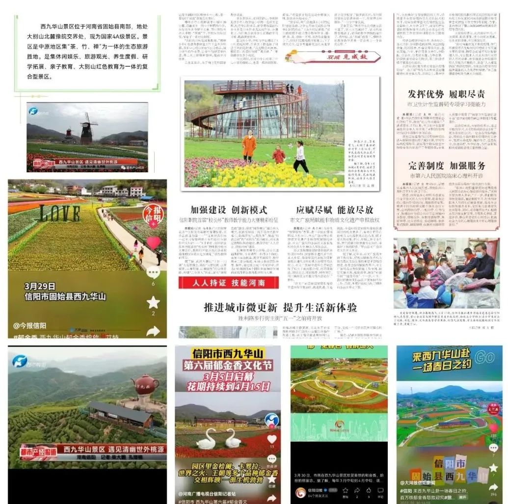 2022年進(jìn)入春季旅游旺季以來,河南廣播電視臺(tái)信陽站、大河網(wǎng)、都市頻道,大河報(bào)信陽新聞、河南旅游資訊網(wǎng)等省內(nèi)多個(gè)主流媒體平臺(tái)連續(xù)多次對(duì)河南西九華山景區(qū)進(jìn)行聚焦報(bào)道。