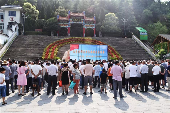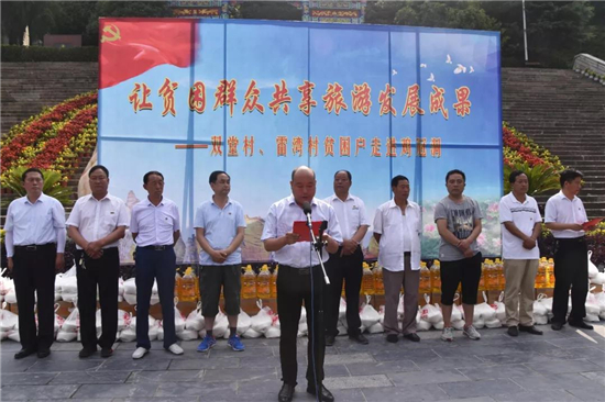 7月1日,雞冠洞景區(qū)隆重舉行 “慶七一,讓貧困群眾共享旅游發(fā)展成果——雙堂村、雷灣村貧困群眾走進雞冠洞”活動。雞冠洞景區(qū)管理處副處長李建倉,雙堂村黨支部書記常院康,駐雙堂村第一書記張然,雙堂村村委主任常彥康,雷灣村黨支部書記郭紅彥,駐雷灣村第一書記劉志強,雷灣村村委主任常貴生,兩村100余戶貧困戶及部分黨員同志參加此次活動。