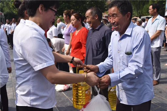 活動開始前,景區(qū)舉行升旗儀式,隨后,景區(qū)向全體貧困戶贈送食油、白糖等慰問品,最后景區(qū)為全體貧困戶贈送景區(qū)娛樂項目體驗票。