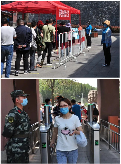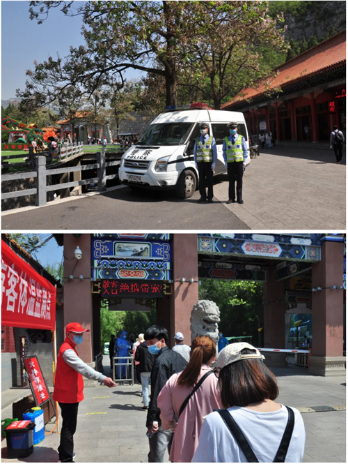 為確保游客安全,景區(qū)在各主要入口安排充足的武警、交警、志愿者及工作人員,筑牢疫情防控安全線,全力保障景區(qū)各處安全有序。