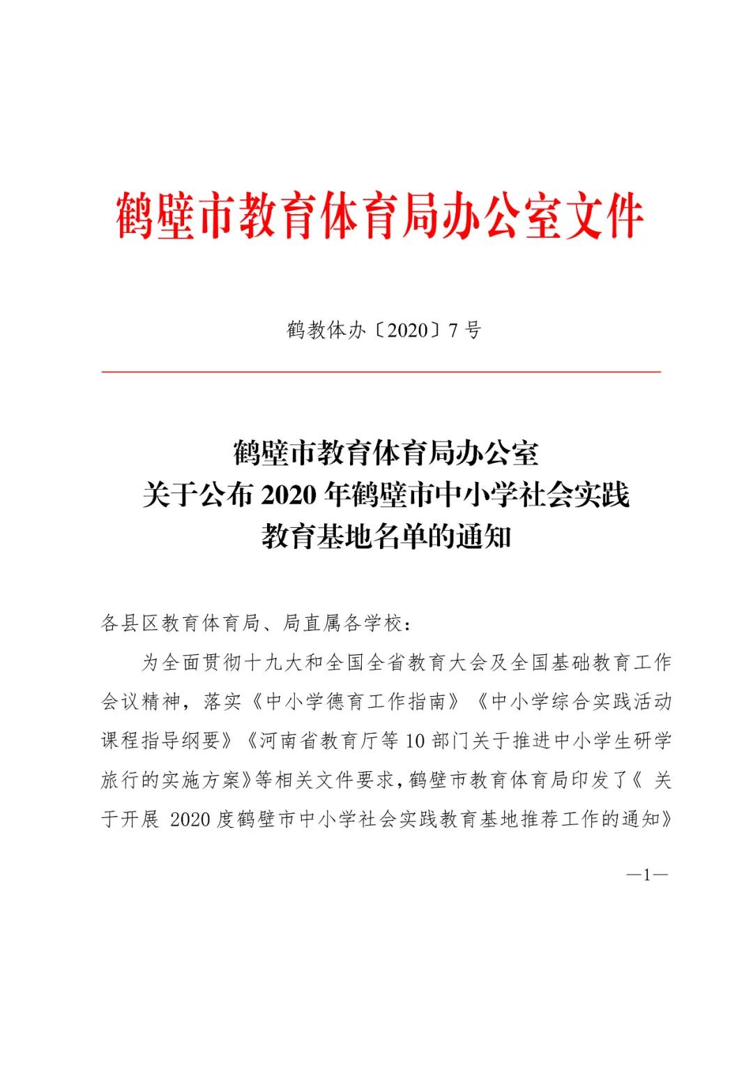 5月21日,鶴壁市教體局下發(fā)了《關(guān)于公布2020年鶴壁市中小學(xué)社會(huì)實(shí)踐教育基地名單的通知》,淇縣云夢(mèng)山景區(qū)、古靈山景區(qū)、朝陽山景區(qū)、大石巖村、趙莊村五家景區(qū)和鄉(xiāng)村旅游特色村上榜。